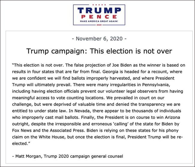 特朗普自己则发推特称,“法律诉讼才刚刚开始!”由于怀疑民主党在多个关键州胜之不武,特朗普及其团队已经做好准备开始一场漫长的法律诉讼,以推翻现在的结果!